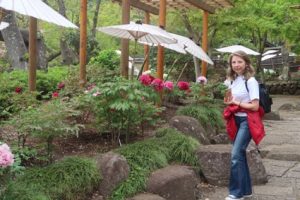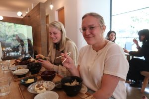 Two young girls from Germany appreciated cherry blossoms and vegan foods