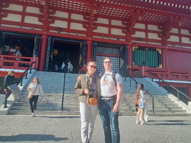 Young couple from Netherlands enjoyed Japanese tea room and shrines